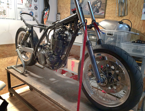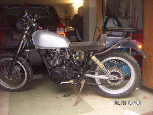 10_2013: zerlegt is - jetzt gehts dann an den Wiederaufbau - neue Schwinge hinten, neue Elektrik, Bank neu, Reifen, Bremsen, etc.…