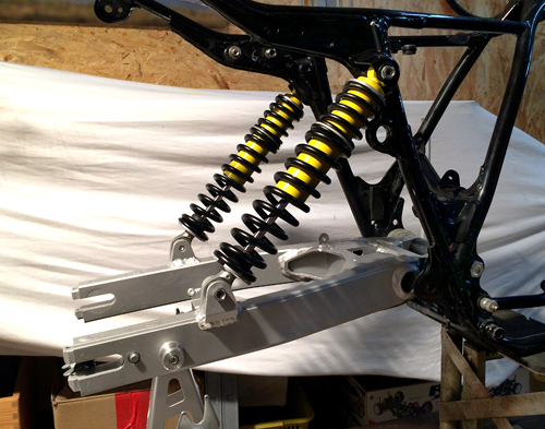 Kastenschwinge eingebaut, Bilstein Dämpfer gepulvert + eingebaut, Gabel überholt und wieder eingebaut