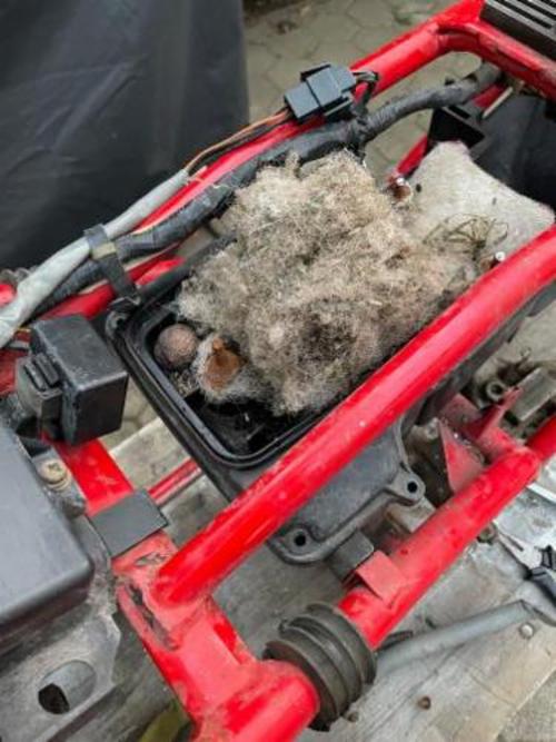 Erstmal komplett zerlegen, im Luftfilter war schöner Wohnen angesagt, da waren die Nüssesammler am Werk
