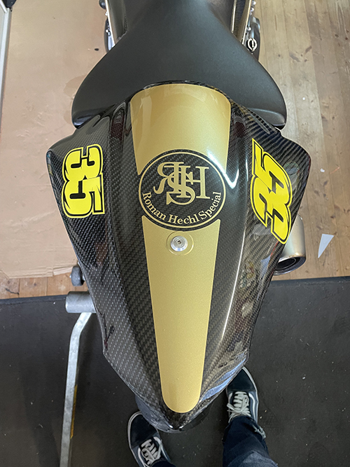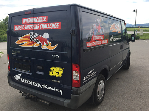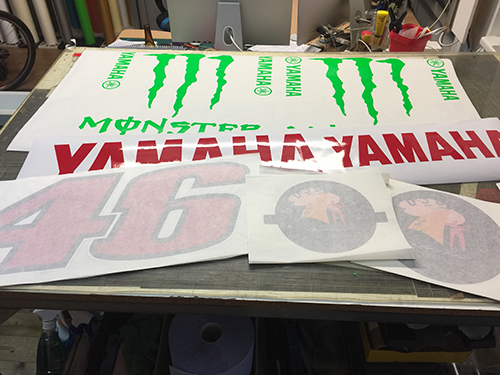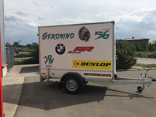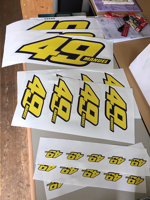 Mein eigentlicher Beruf - Grafiker - wir haben einen Großformatdrucker, Schneideplotter, Laminator, Thermopresse, etc. im Haus. D. h. Bike, Anhänger, Helm, T-Shirts, etc. individualisiern nach euren Wünschen - kein Problem. Anbei einige Muster die wir schon gemacht haben. Wenns Fragen gibt ruft mich einfach an!