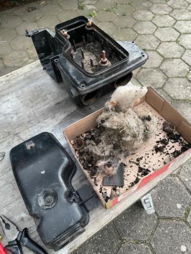 Erstmal komplett zerlegen, im Luftfilter war schöner Wohnen angesagt, da waren die Nüssesammler am Werk