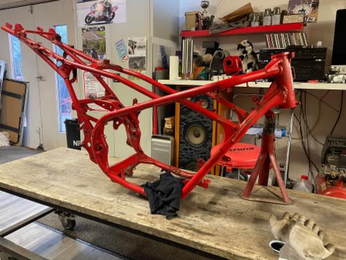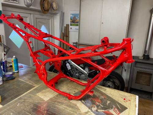Rahmen neu lackieren in der Originalfarbe (danke an die Fa. Just für die Lackmischung)