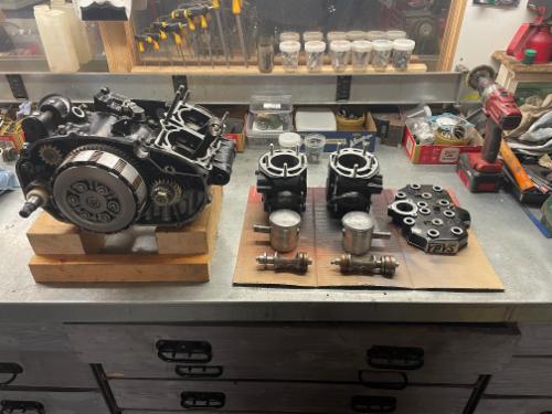 Motor mit neuen Dichtungen und neuer Wasserpumpe auch wieder im Aufbau